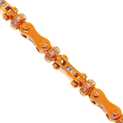 Get a treasure to wear, our diamond bullet link bracelet is truly handsome! It's artfully produced from unique 14k rose gold, and high-polished for very smooth finish. The piece is also channel-set with icy white round brilliant-cut natural diamonds, all weighting 2.60 carats. It features total length of 9.25 inches and width of 8 mm. The endings are closed by a secure lobster claw clasp. This men's wrist bracelet stands out from all the rest!