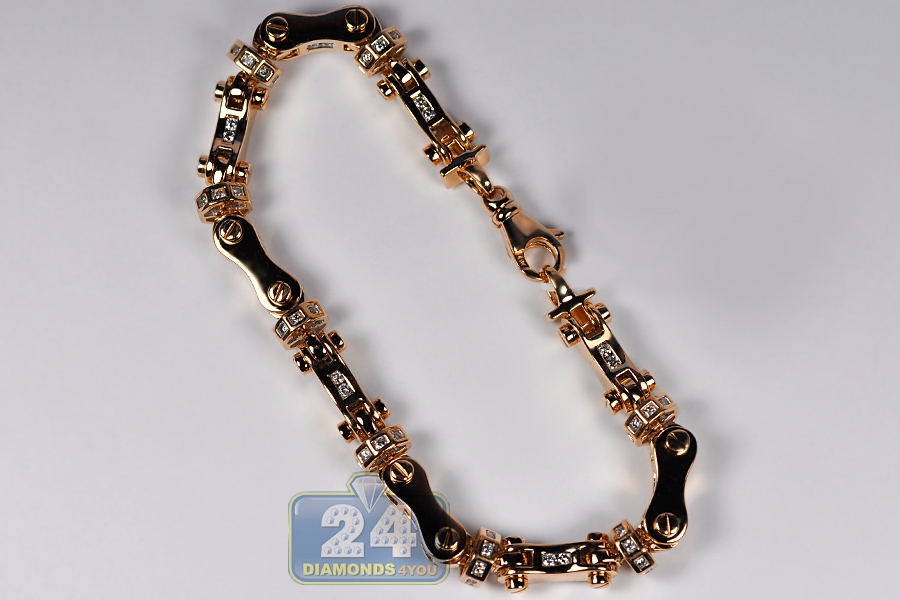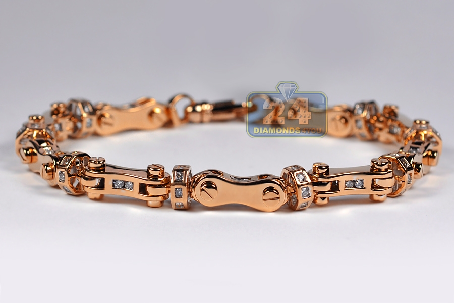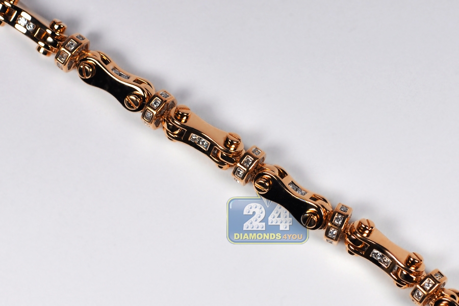 14K Rose Gold 2.60 ct Diamond Bullet Link Mens Bracelet 8 mm