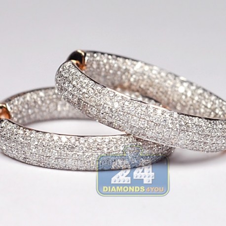 14K Rose Gold 2.03 ct Inside Out Diamond Round Hoop Earrings