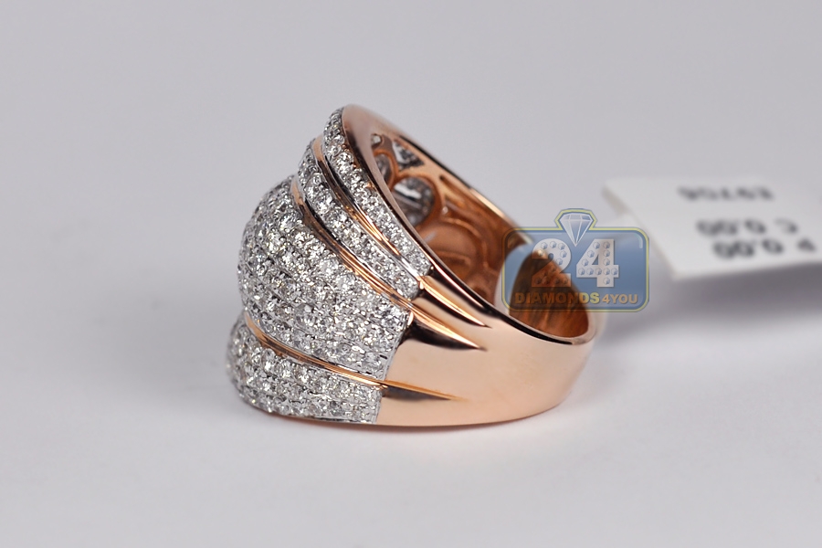 14K Rose Gold 2.55 ct Diamond Womens Wide Ring
