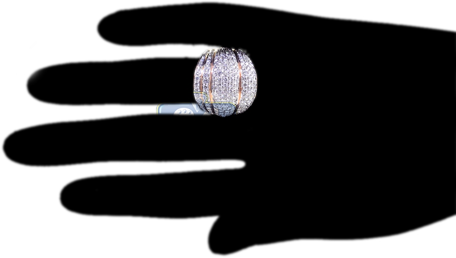 Shimmering with lots of sparkling diamonds, our massive ring makes a real statement! It showcases absolutely impressive design, natural materials and expert craftsmanship! The ring is handmade of fancy 14k rose gold with perfectly polished finish, and beautifully handset with icy white round brilliant-cut diamonds totaling 2.55 carats. Amaze yourself with such an exclusive diamond ring!