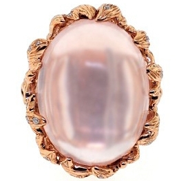14K Rose Gold 26.39 ct Cabochon Quartz Diamond Vintage Cocktail Ring
