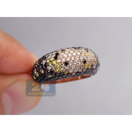 Featuring absolutely sumptuous design created with the unique mosaic pattern! The band is artfully handmade of 14k rose gold with high polished finish, and skillfully accented with 2.84 carat of mixed white, yellow and black round cut diamonds. The brilliants are gorgeously handset half way around the piece. No doubt, such a gorgeous color combination makes this jewel one of a kind!
