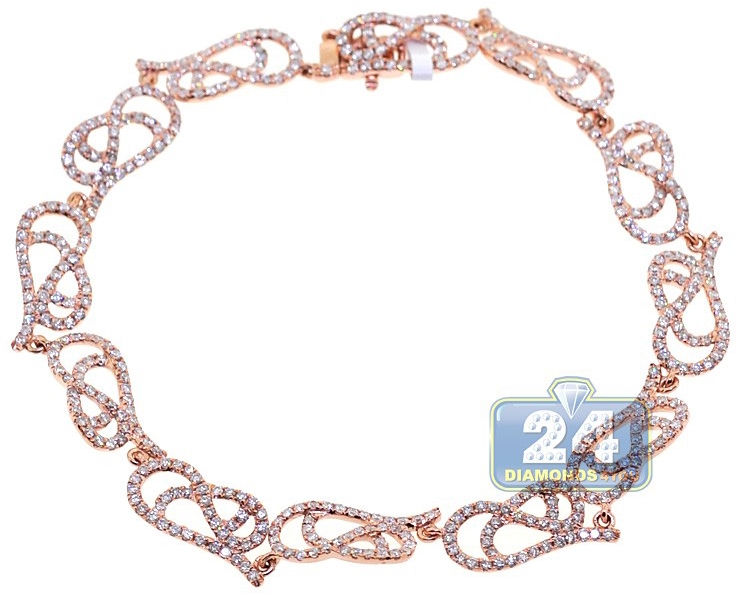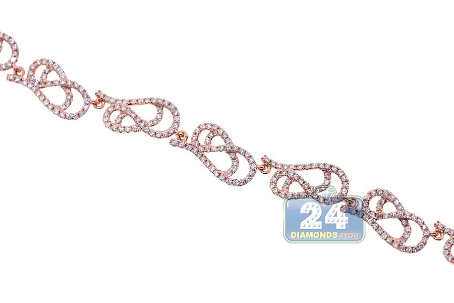 14K Rose Gold 3.16 ct Diamond Filigree Link Womens Bracelet