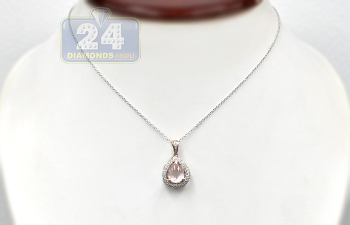 If you're a fan of precious stones, this pink quartz teardrop pendant is an elegant find! It's expertly made of gorgeous 14 karat rose gold, and highly polished for ultra smooth feel. The drop pendant is encrusted with natural pink pear-cut quartz in the center that surrounded by icy white round brilliant-cut diamonds. Our women's gemstone pendant measures 25 mm in total height and 14 mm in width. This piece of jewelry is really bright with a bursting sense of excitement!