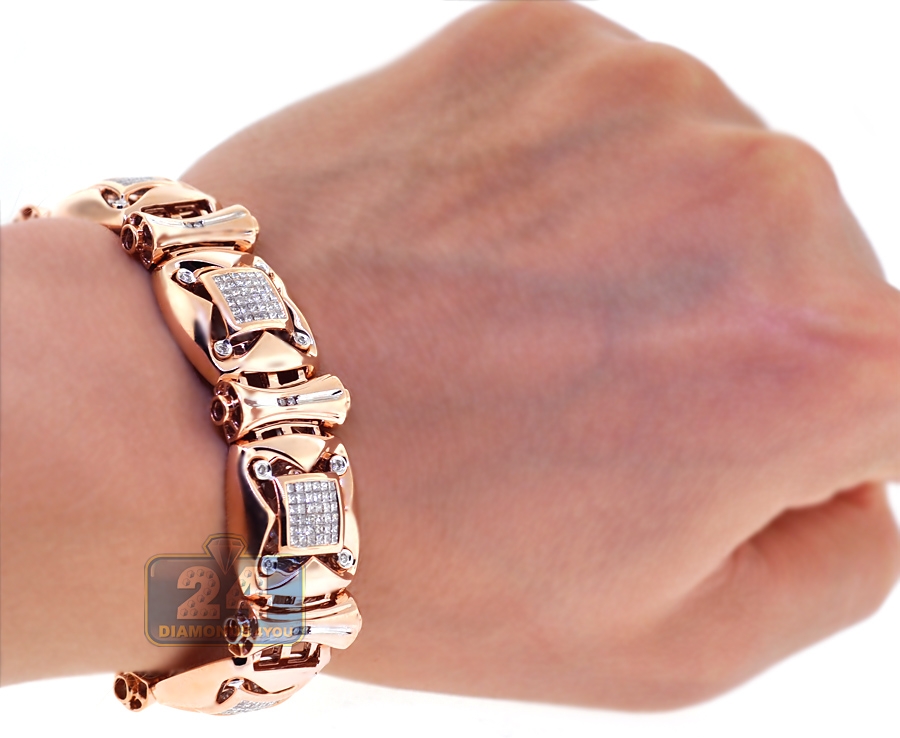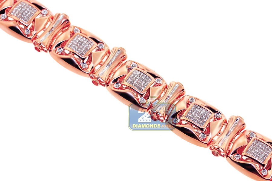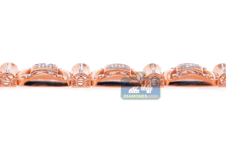 14K Rose Gold 3.88 ct Diamond Link Mens Bracelet 8 1/4 Inch