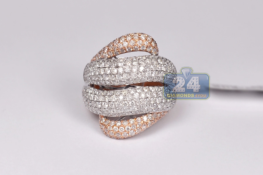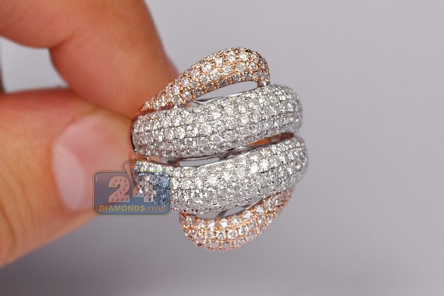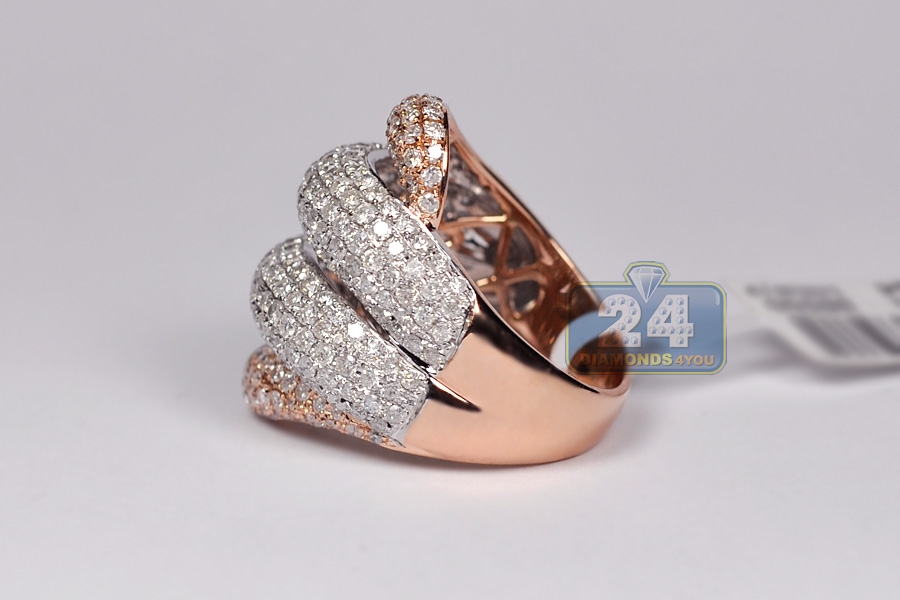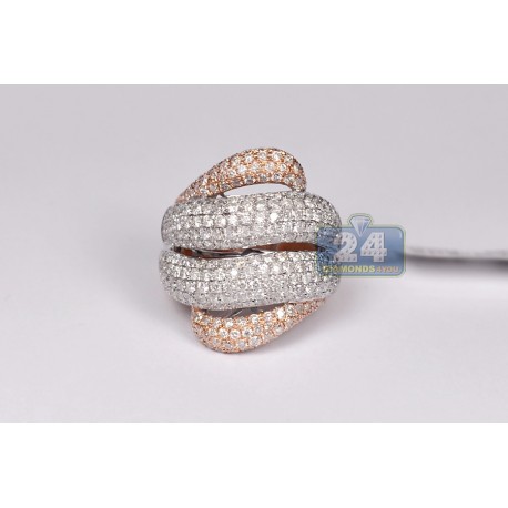 14K Rose White Gold 3.56 ct Diamond Wave Band Ring