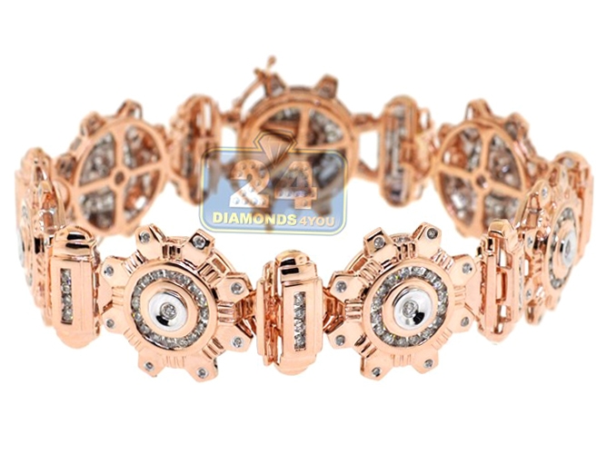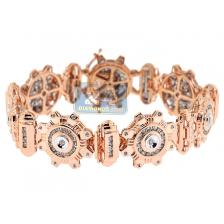 14K Rose Gold 3.57 ct Diamond Round Link Mens Bracelet 8 Inch