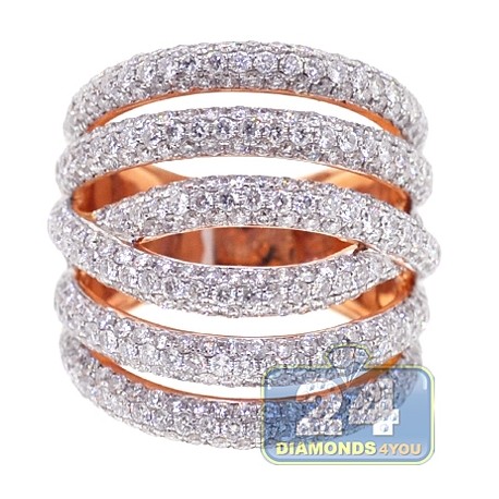 14K Rose Gold 3.91 ct Diamond Womens Long Multiband Ring