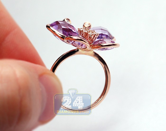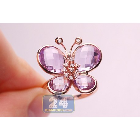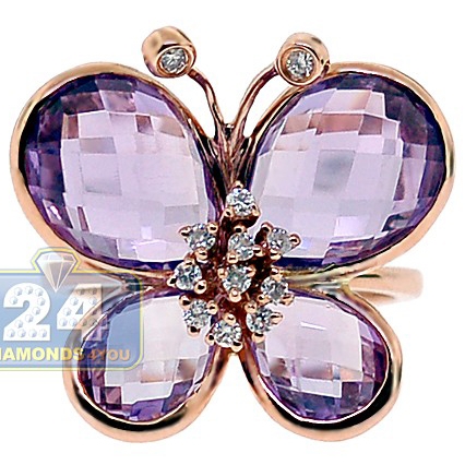 14K Rose Gold 4.39 ct Amethyst Diamond Butterfly Cocktail Ring