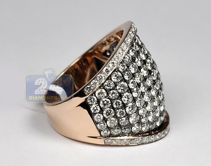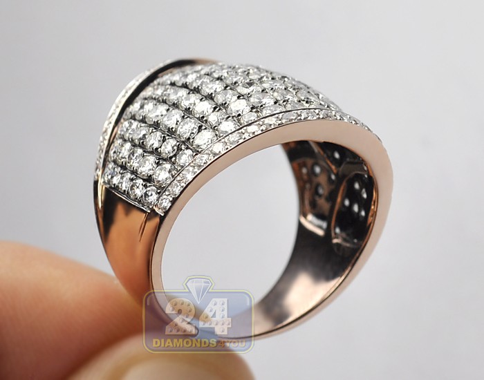 14K Rose Gold 5.22 ct Diamond Mens Wide Band Ring