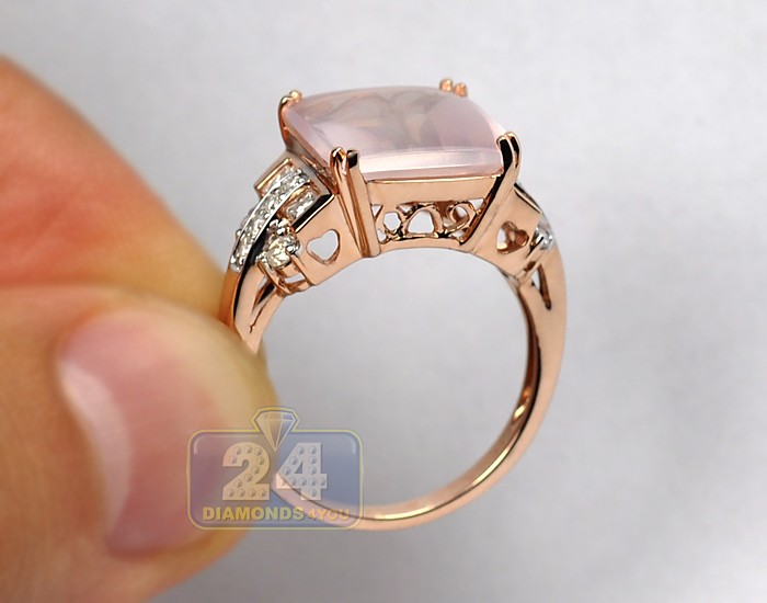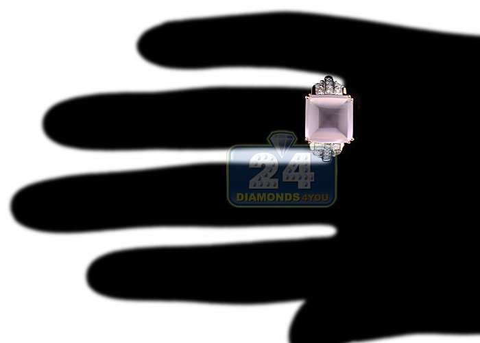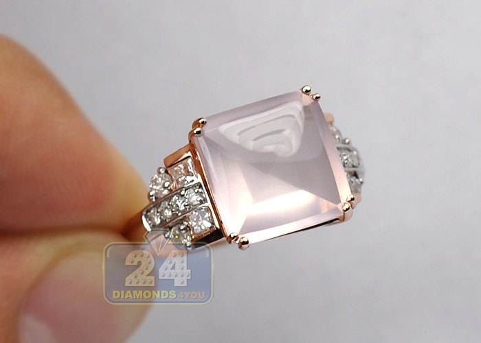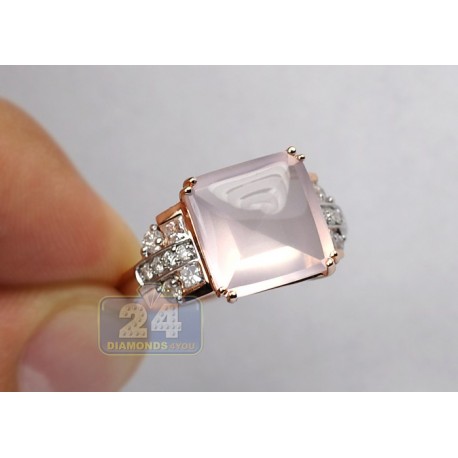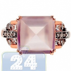 14K Rose Gold 6.35 ct Pink Quartz Diamond Womens Cocktail Ring