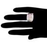 What a beautiful game of colors! Our diamond band is artfully handmade for a truly sophisticated lady! This one of a kind piece is designed in 14k white, yellow, rose gold, with highly polished finish and gorgeously encrusted with 2.76 carats of white round cut diamonds. Sparkling and eye clean diamonds are SI1-SI2 clarity with G-H color. Our amazing diamond ring will be your favorite one!