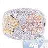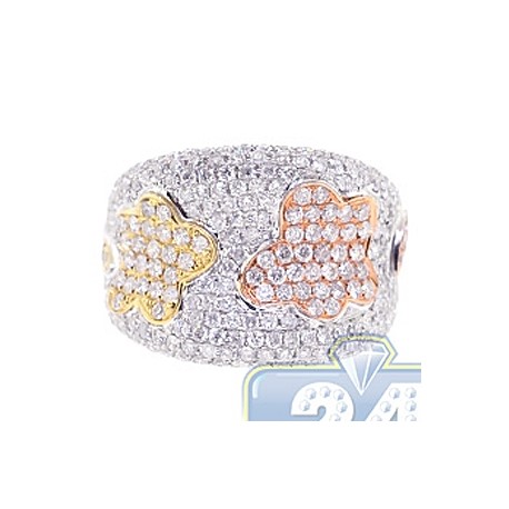 14K Three Tone Gold 2.76 ct Diamond Womens Flower Ring