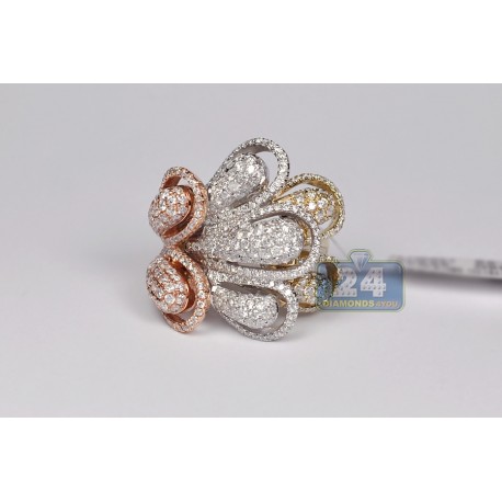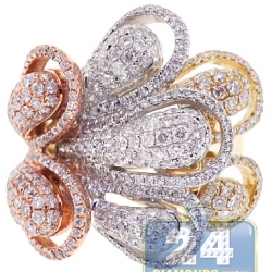 14K 3 Tone Gold 3.10 ct Diamond Abstract Flower Cocktail Ring