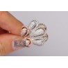 An expression of extravagant style, our abstractly shaped flower ring is a nice finish to your overall look! The ring is beautifully handcrafted from mixed 14k white, yellow, rose gold, and masterly accented with icy white round cut diamonds totaling 3.10 carat. Natural, sparkling, eye clean brilliants with G-H color and SI1-SI2 clarity are amazingly completing such a fancy shaped design. What an impressive jewelry piece for the modern lady!