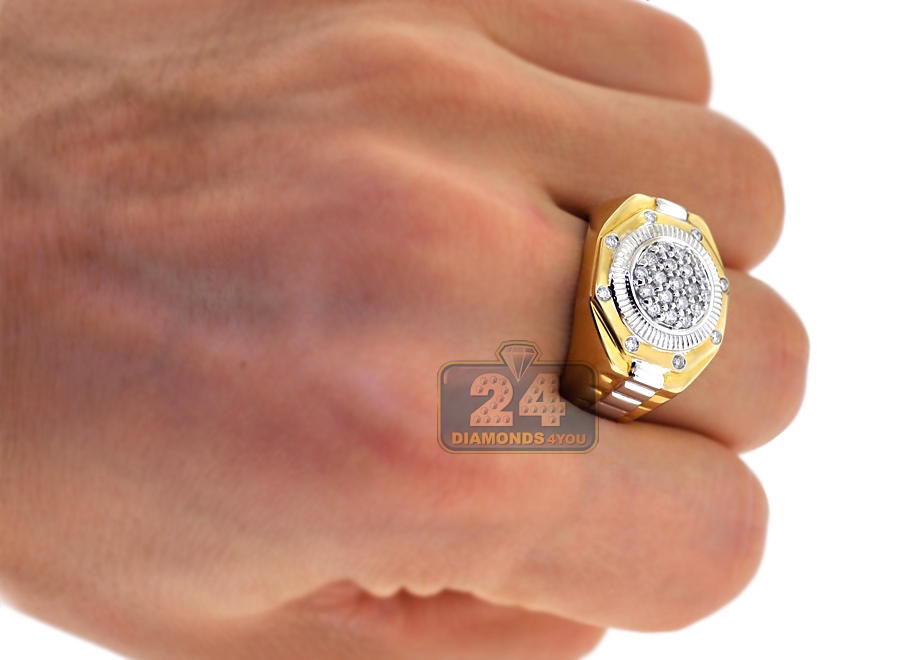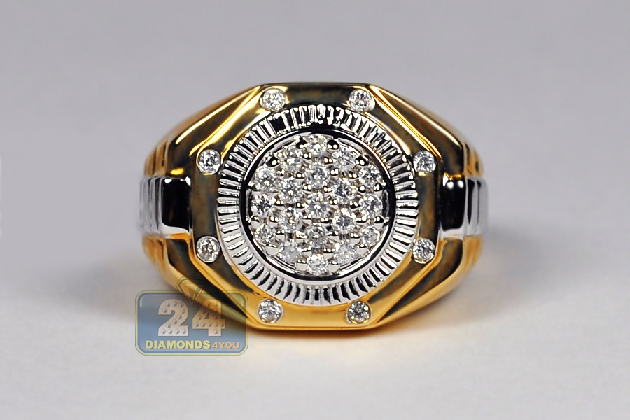 14K Two Tone Gold 0.50 ct Diamond Mens Step Ring
