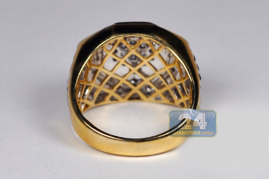 A bold presentation of handsome style comes in our diamond step ring! Lovely created from warm 14k yellow gold, it has highly-polished smooth finish. There are also white rhodium accents that add unique contrast. The piece is encrusted with 0.50 carat of icy white round brilliant-cut genuine diamonds. Measuring 17 mm in width, this men's signet ring is both contemporary and classic!