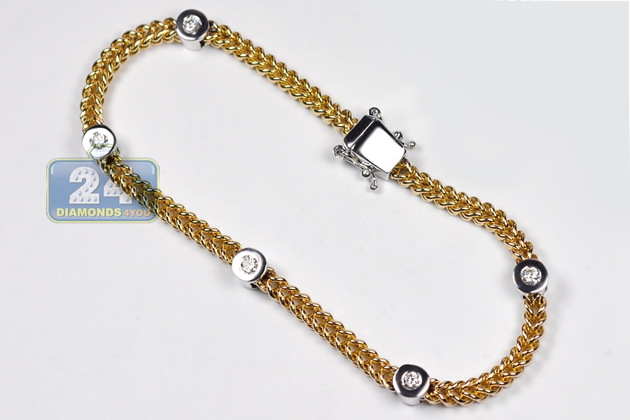 14K Two Tone Gold 0.60 ct Diamond Franco Bracelet 4 mm 9 Inch