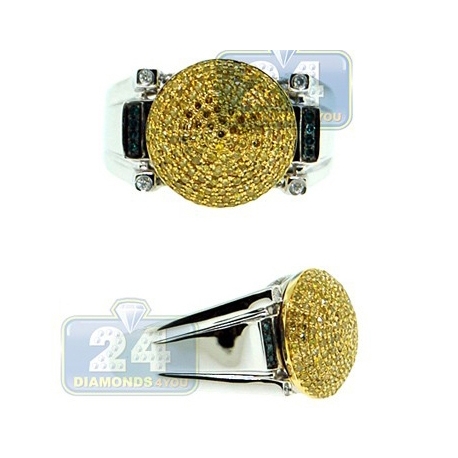 14K Two Tone Gold 0.80 ct Yellow Blue Diamond Mens Ring