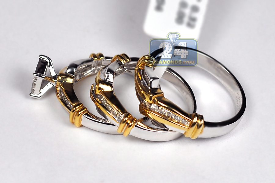 14K Two Tone Gold 0.82 ct Diamond Wedding Set of 3 Rings