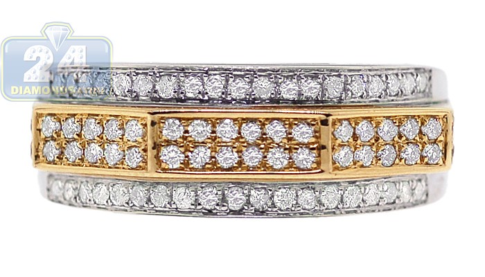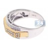 14K Two Tone Gold 0.61 ct 4 Row Diamond Mens Embossed Band Ring