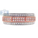 Eye catching and stylish, our fancy colored band is so aristocratic! It is professionally designed with mixed 14k white and rose gold with highly polished finish. Absolutely impressive four rows of icy white round shaped diamonds totaling 0.63 carat are gorgeously accenting this ring. Each precious stone is genuine, eye clean and sparkling, with G-H color and SI1-SI2 clarity grades.
