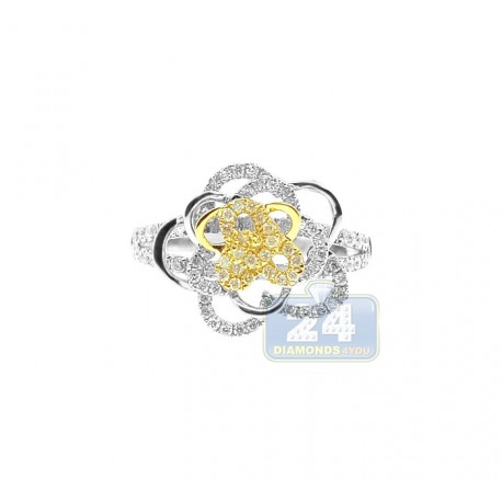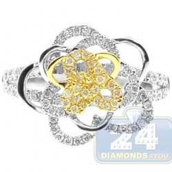 14K Two Tone Gold 0.70 ct Diamond Womens Rose Flower Ring