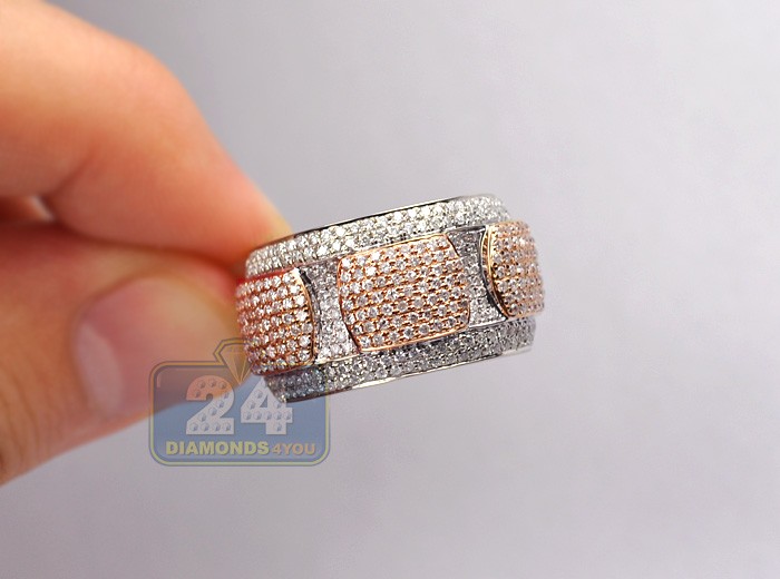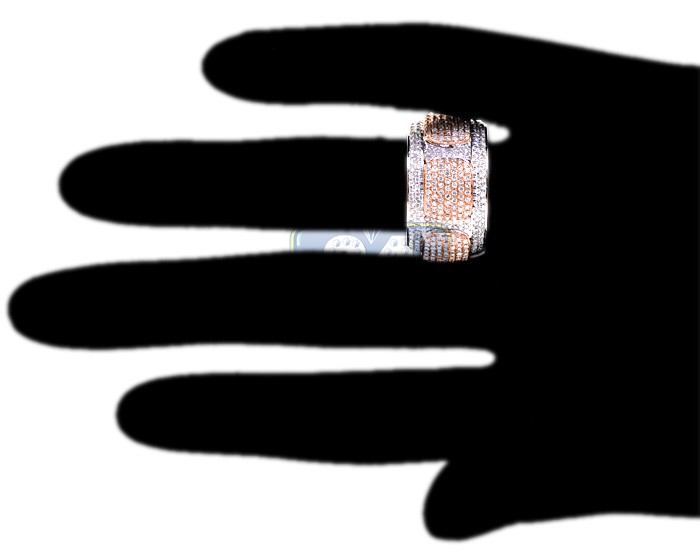 Impressively shaped and professionally crafted using high quality natural materials! Our alluring jewel features fancy edge patterns in perfectly polished 14k white gold with rose accents. It is also gorgeously encrusted with 1.41 carat of sparkling round diamonds of G-H color and SI1-SI2 clarity. Each stone is totally eye clean and shimmering. This ring is a good gift to yourself or someone special!