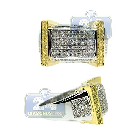 14K Two Tone Gold 1.45 ct Diamond Mens Signet Ring
