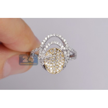 14K Two Tone Gold 1.14 ct Diamond Womens Oval Openwork Ring