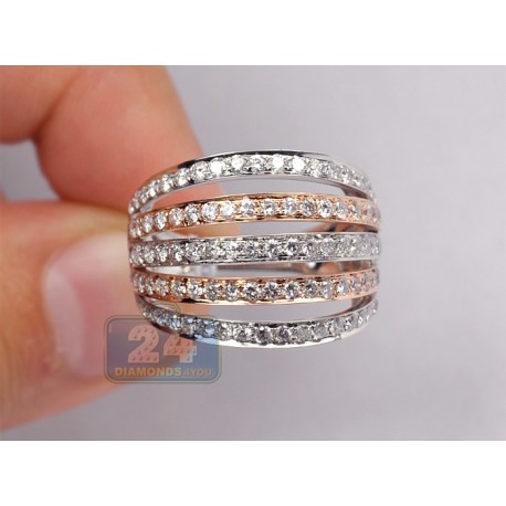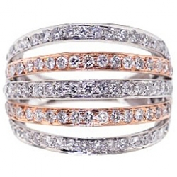 Our band features a fancy openwork design, skillfully handmade of high polished 14k white and rose gold, professionally encrusted with five rows of icy white diamonds totaling 2.21 carat. All brilliants are sparkling and eye clean, with G-H color and SI1-SI2 clarity. Light up the night with this sparkling diamond band!