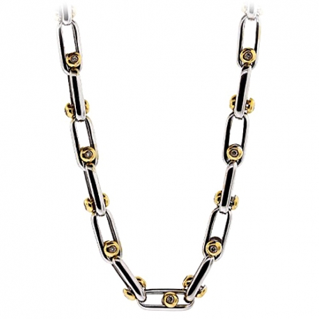 Enchant your ensemble with our magnificent diamond link chain! Smartly handcrafted in solid 14 karat gold of white and yellow colors, it's precisely polished for ultra shimmering look. The round-shaped beads are moving along the links, and bezel set with lustrous white genuine diamonds weighting 2.23 carats. This men's diamond necklace measures length of 30 inches, width of 6 mm and approximate weight of 74 grams. Don't be afraid to lose the diamond necklace because it's secured by a lobster claw clasp. An exceptional find!