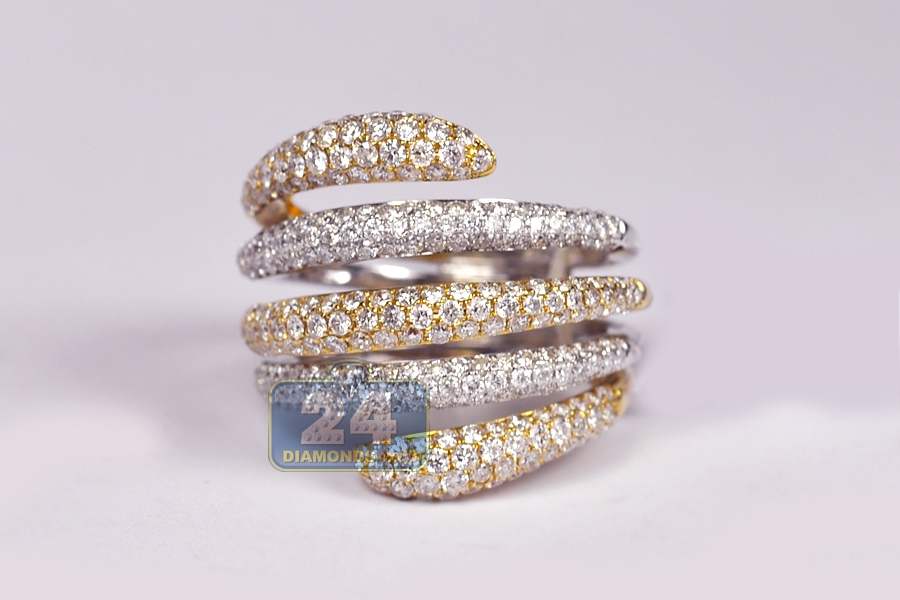 14K Two Tone Gold 2.45 ct Diamond Womens Multiband Ring