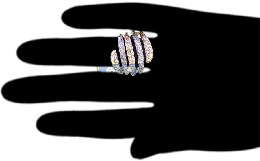 Gorgeously designed to show the impression of additional width, our beautiful diamond band shines like a million dollars piece! It is professionally handcrafted from lustrous 14k white and yellow gold with highly polished finish, and encrusted with 2.45 carats of icy white round brilliant-cut diamonds. Show your impressive taste and unique style with such a breathtaking multiband ring!