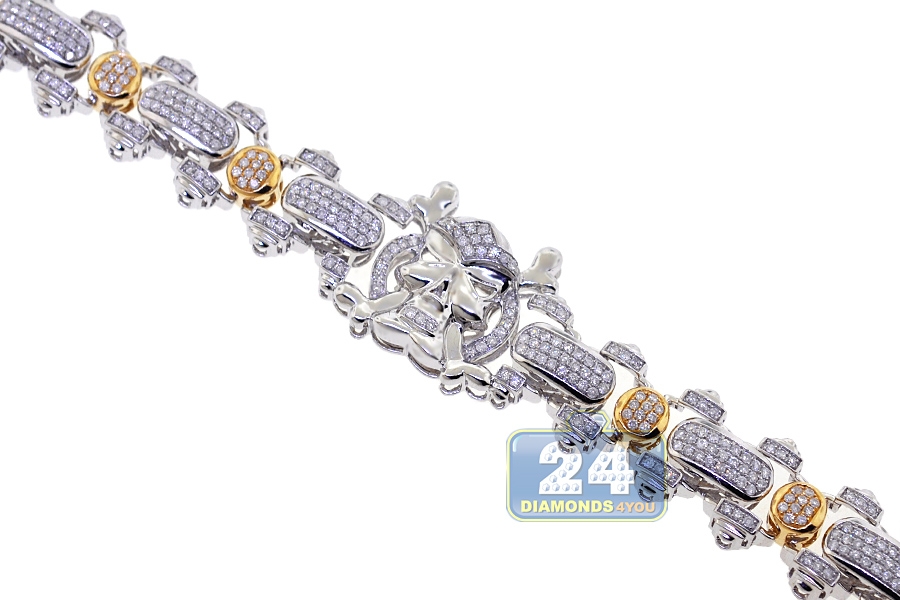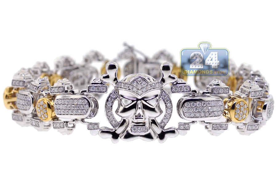 14K Two Tone Gold 5.12 ct Diamond Skull Mens Bracelet 8.5 Inches