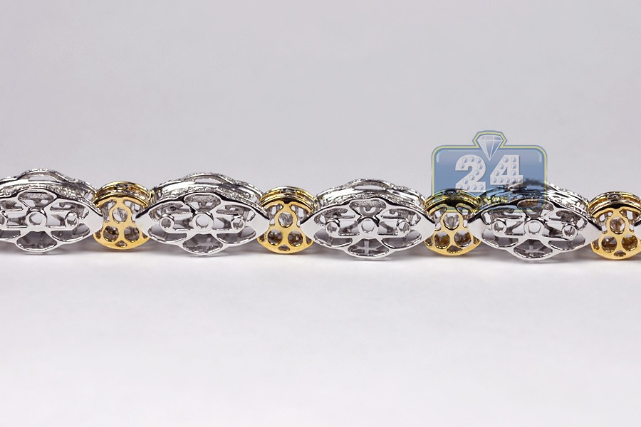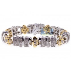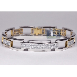 14K Two Tone Gold 8.17 ct Diamond Mens Bracelet 8 1/2 Inches