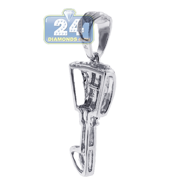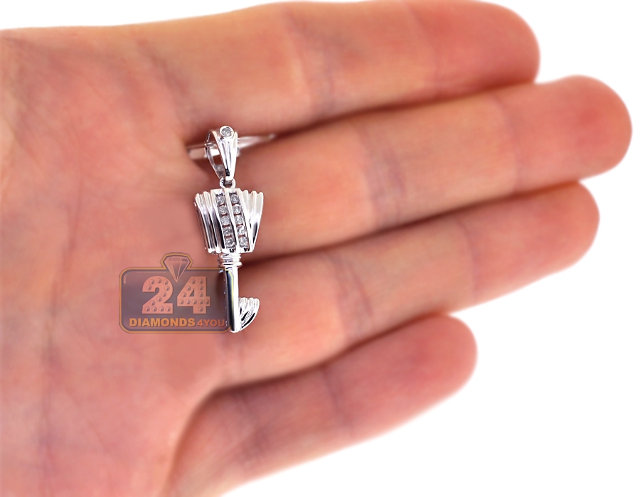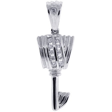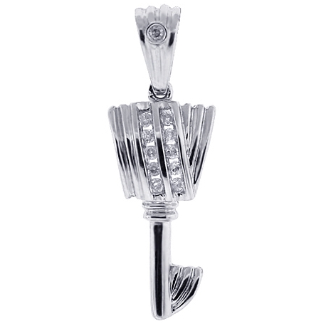 14K White Gold 0.16 ct Diamond Small Key Womens Pendant
