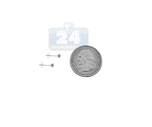 14K White Gold 0.20 ct Black Round CZ Push Stud Kids Earrings 3 mm