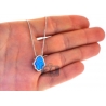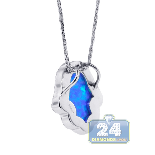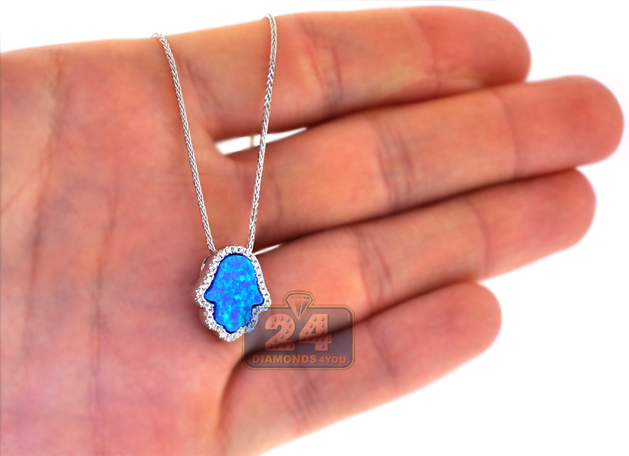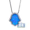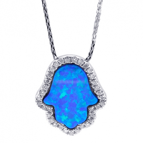 14K White Gold 0.20 ct Diamond Blue Opal Hamsa Hand Necklace