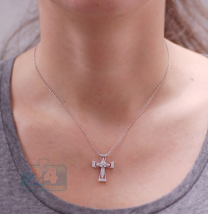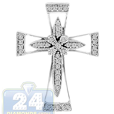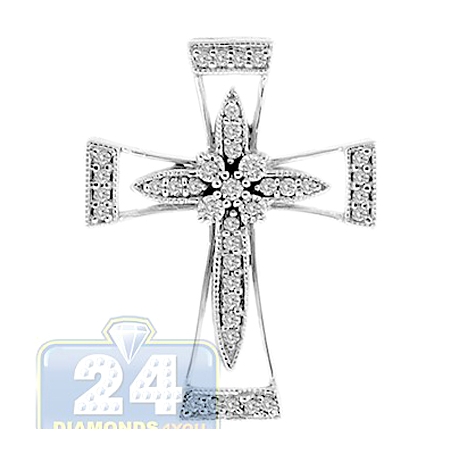 14K White Gold 0.22 ct Diamond Halo Cross Womens Pendant