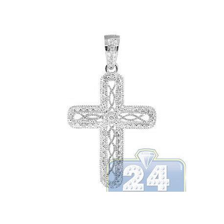 14K White Gold 0.25 ct Diamond Filigree Cross Womens Pendant