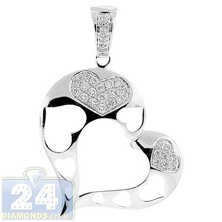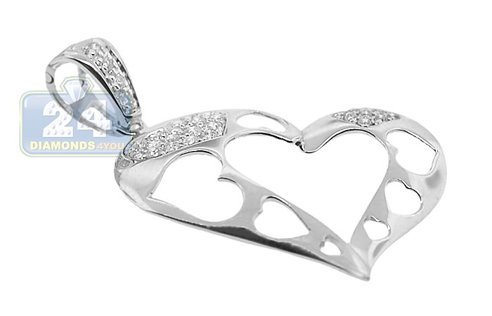 14K White Gold 0.33 ct Diamond Open Heart Womens Pendant