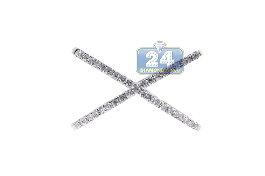 14K White Gold 0.33 ct Diamond Womens Criss Cross Ring
