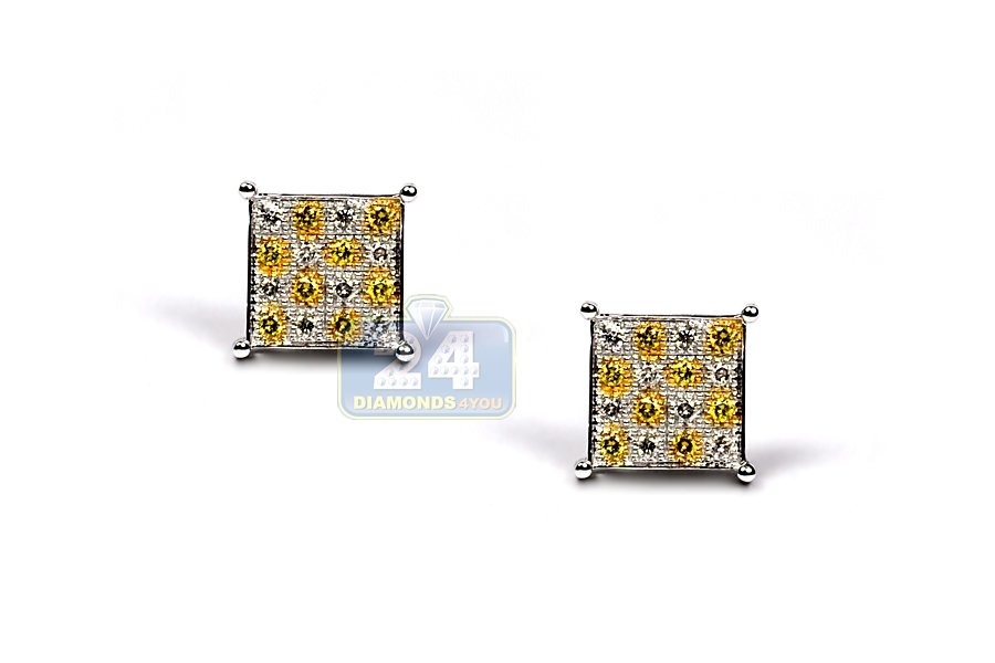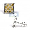 14K White Gold 0.35 ct Yellow Diamond Chess Mens Stud Earrings