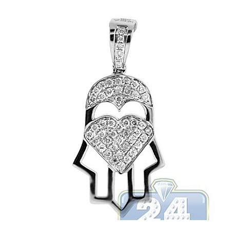 14K White Gold 0.42 ct Diamond Hamsa Hand Heart Pendant