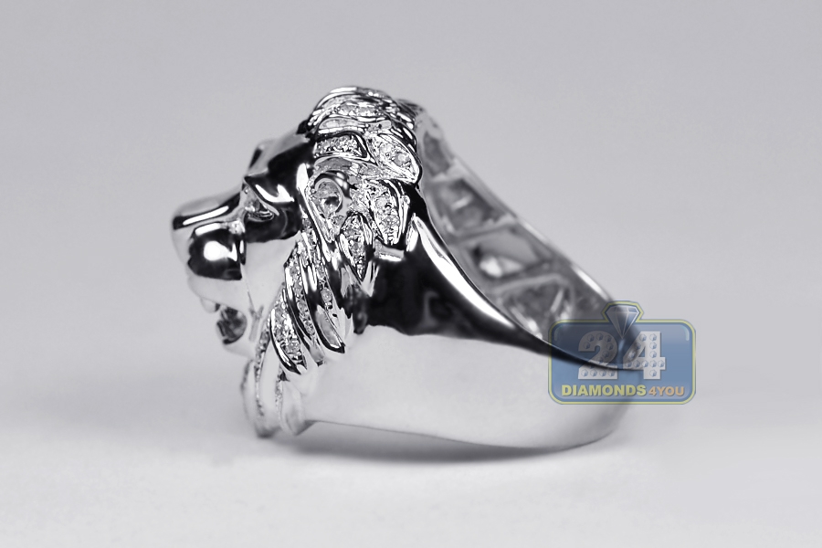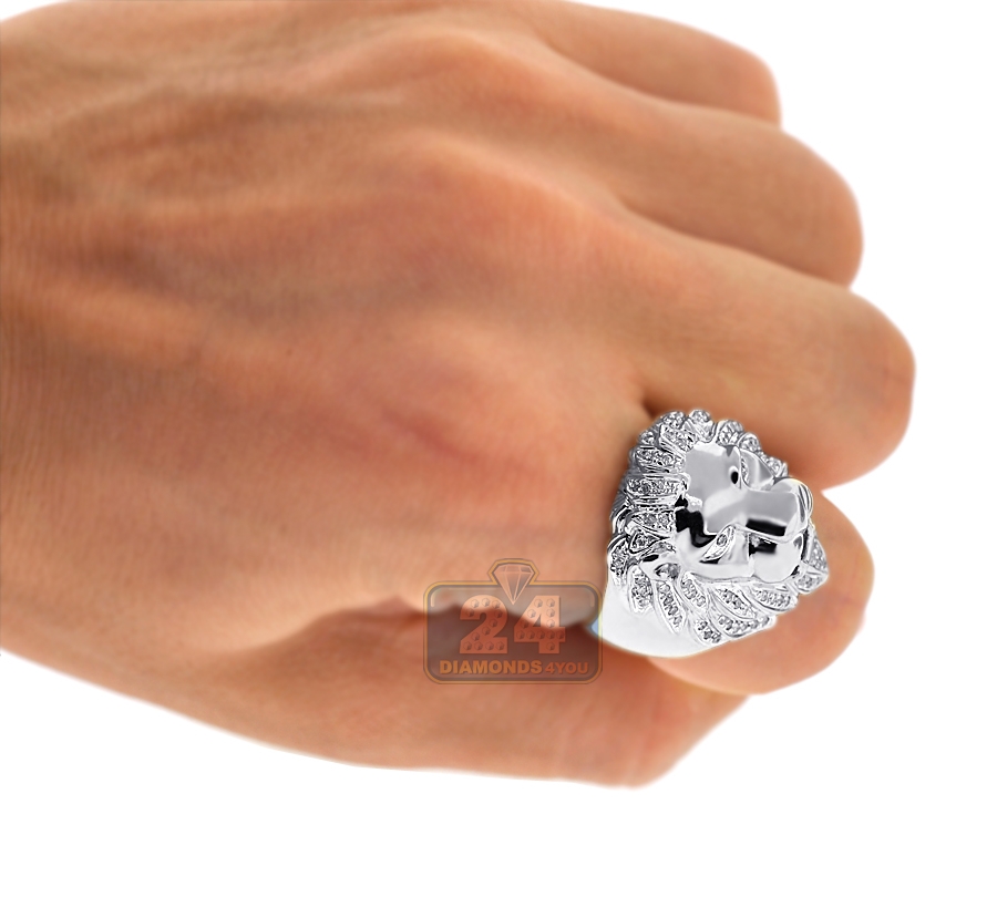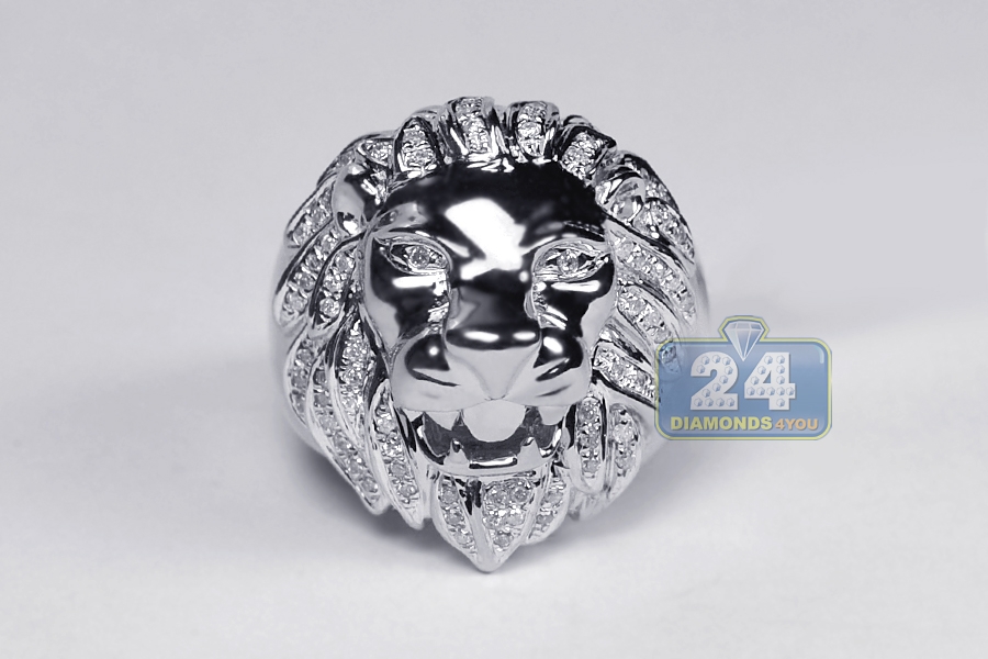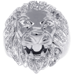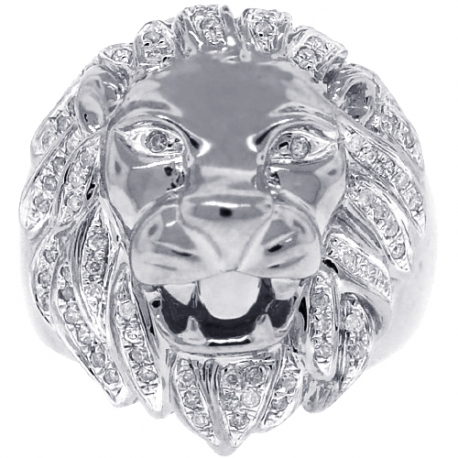 14K White Gold 0.44 ct Diamond Lion Head Mens Ring