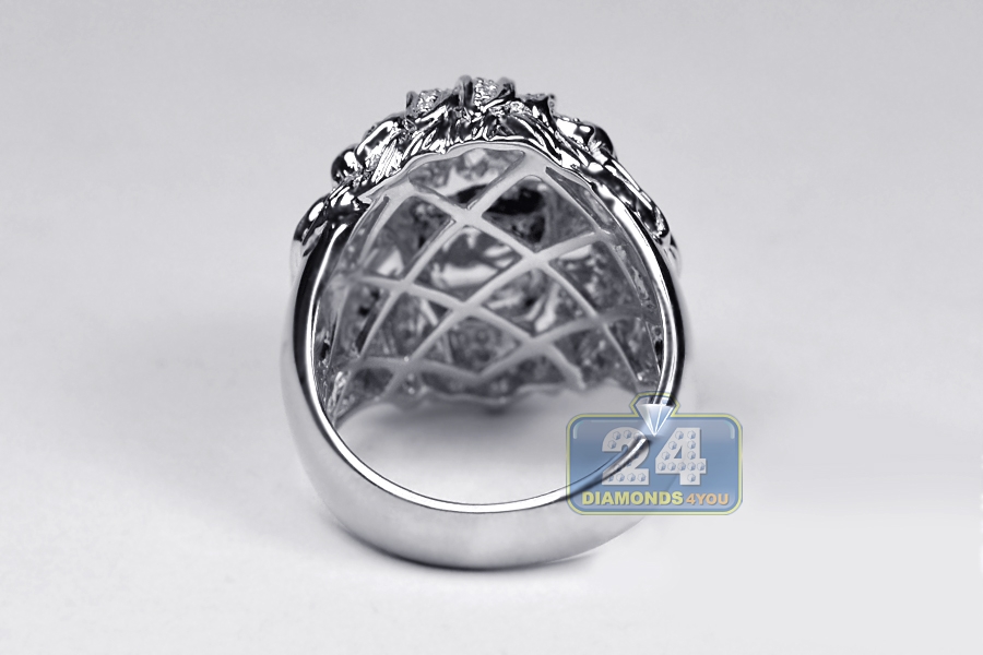 Our lion head ring reminds ourselves that strength is within! The piece is expertly handmade of cool 14k white gold, and highly polished for ultra shimmering look. The head is amazed with 0.44 carat of icy white round brilliant-cut genuine diamonds. The top of this diamond ring measures 25 mm in width, and the shank is 5 mm. This men's diamond ring will add truly wild flair to your look!