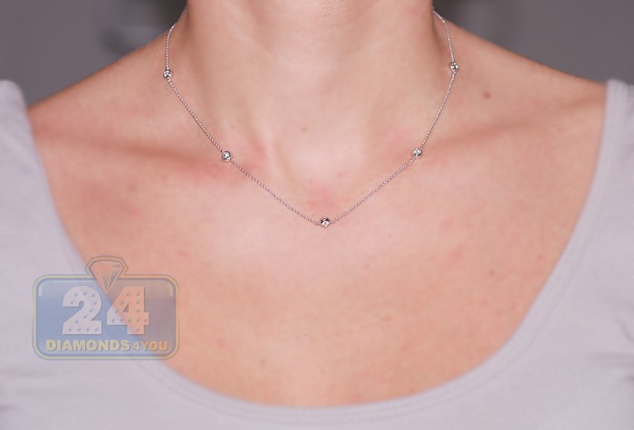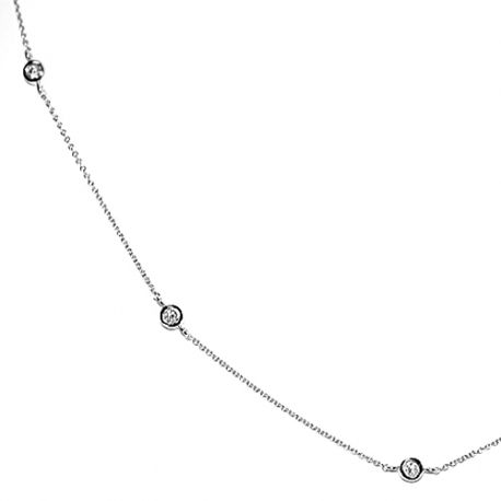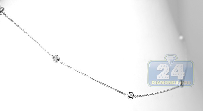 A fancy occasion calls for a spectacular piece of jewelry such this diamond station necklace! Skillfully manufactured from solid 14 karat white gold, it features highly polished smooth finish. The stations are bezel set with lustrous white round brilliant-cut authentic diamonds, all weighting 0.47 carat (SI1-SI2 clarity, G-H color). Our diamonds by the yard necklace has total length of 16 inches; and closed by comfortable lobster claw. Add women's diamond necklace toy your classy collection!
