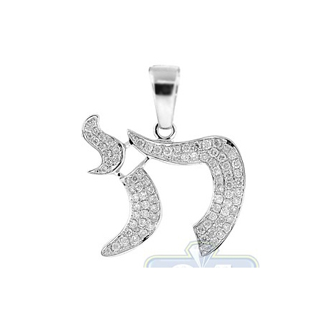 14K White Gold 0.50 ct Diamond Chai Jewish Pendant